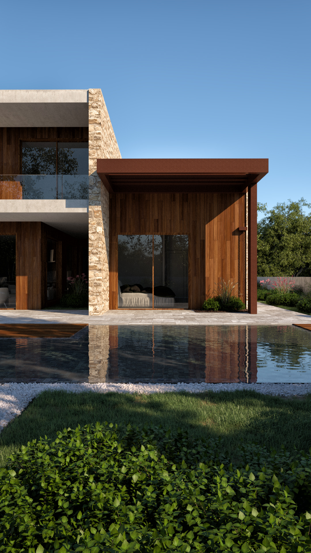 Built on three floors the villa is made of an assemblage of monolithic blocks that are at times extended with corten strutctures to sooth the summer light, or encircled with fully retractable windows and embellished with solid wood cladding.