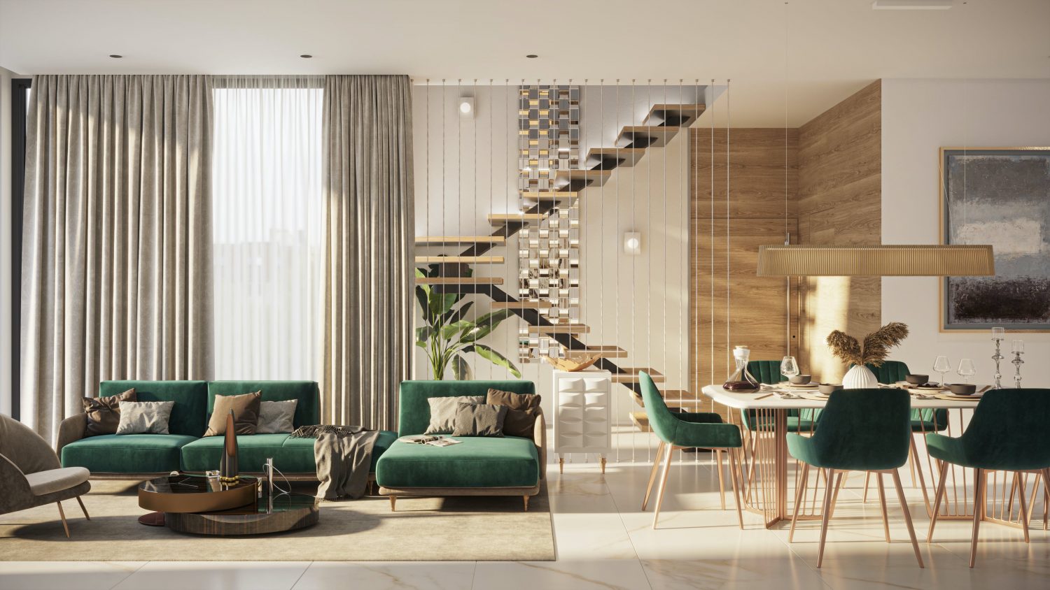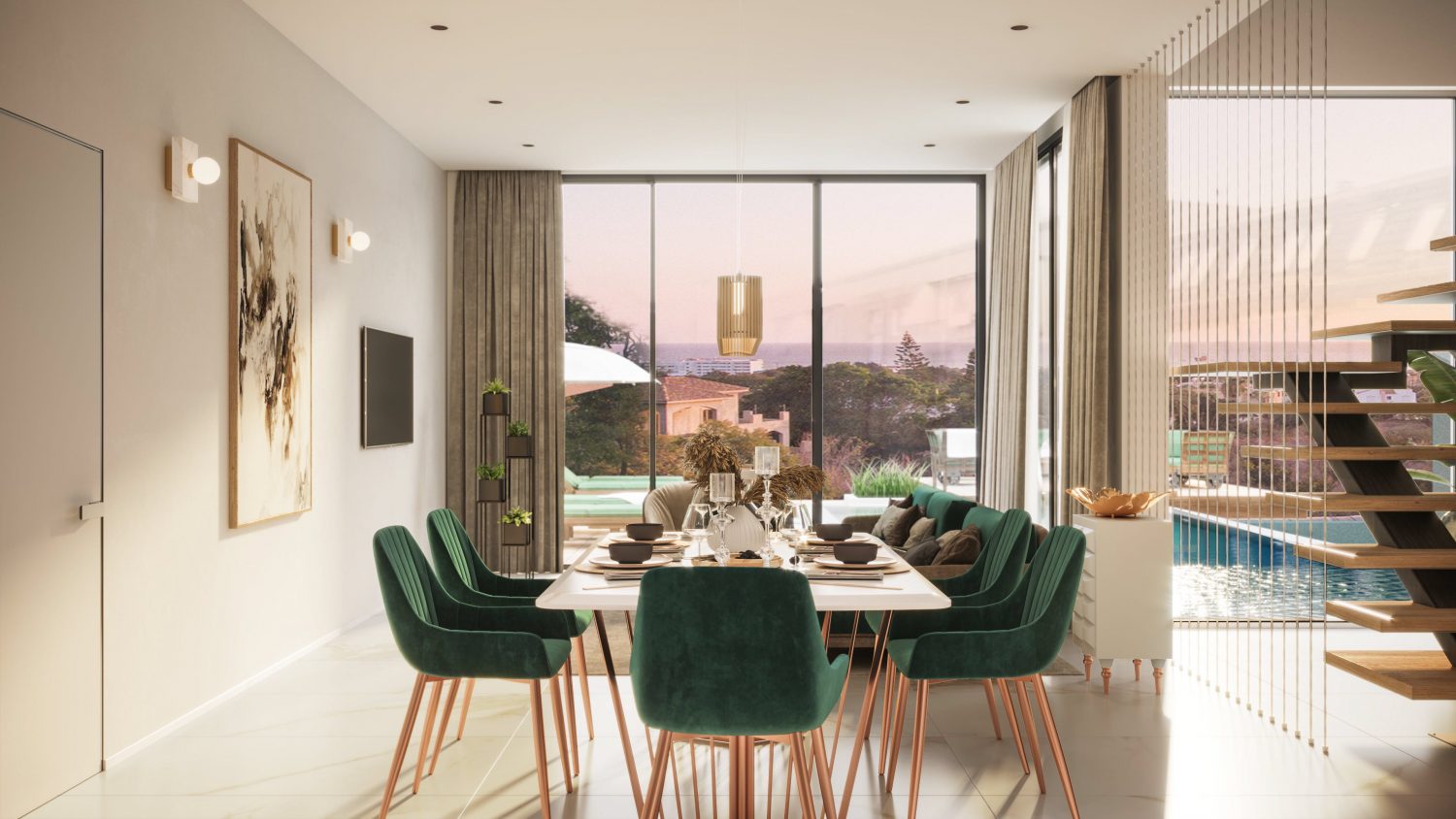 These elegant villas are a perfect blend of modernity with just a touch of traditional elements to make you feel at home. The modern use of natural materials in exterior decoration, such as natural stone and wood, creates a feeling of a peaceful oasis. Ample patio doors fill interiors with natural light. Villas design provides a harmonious interaction of internal and external spaces, combining traditions of Mediterranean culture and a close relationship with nature.