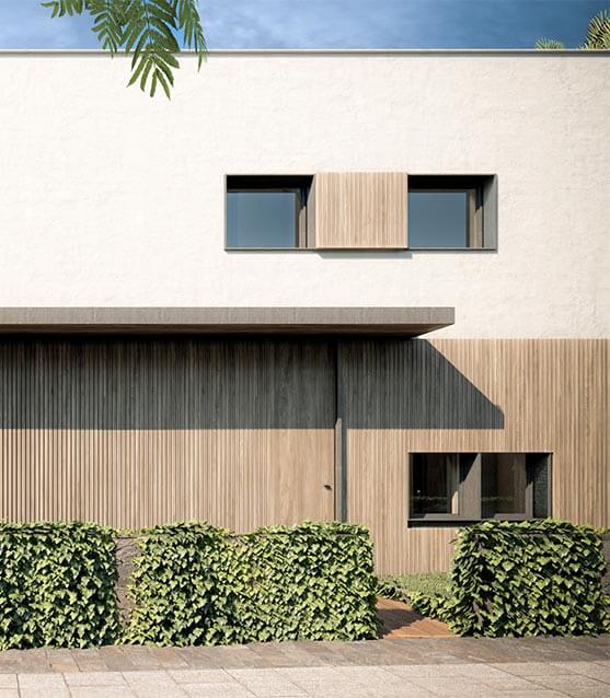 Lower part of the project consists of eight detached villas, each with private swimming pool. On the ground floor you will find a spacious living area and open plan kitchen/dining zone. There is also a guest WC. Upstairs there are three spacious double bedrooms, family bathroom and en-suite shower in the master bedroom. Additionally there is a lower level, which can be designed according the client’s needs (as a guest area, hobby room, office etc.)